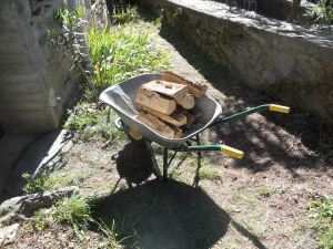 Vandaag heb ik de kachel uit laten gaan. Ik kon me verwarmen aan de vijf stères hout die de vriendelijke man uit Prades in mijn straat had gestort. Hij leverde om kwart voor acht en om acht uur begon ik aan het helse karwei om alles gestapeld te krijgen. Ik begon met een paar handschoenen en een mand, maar om tien uur bracht mijn linker buurman mij een kruiwagen. Une brouette, weer een mooi woord geleerd. Dat was de enige hulp die ik kreeg, en gelukkig maar. Ik wou geen hulp en ik had al een paar mooie Franse zinnen in gedachten waarmee ik de eventueel aangeboden hulp vriendelijk maar kordaat zou weigeren. Maar het was niet nodig.