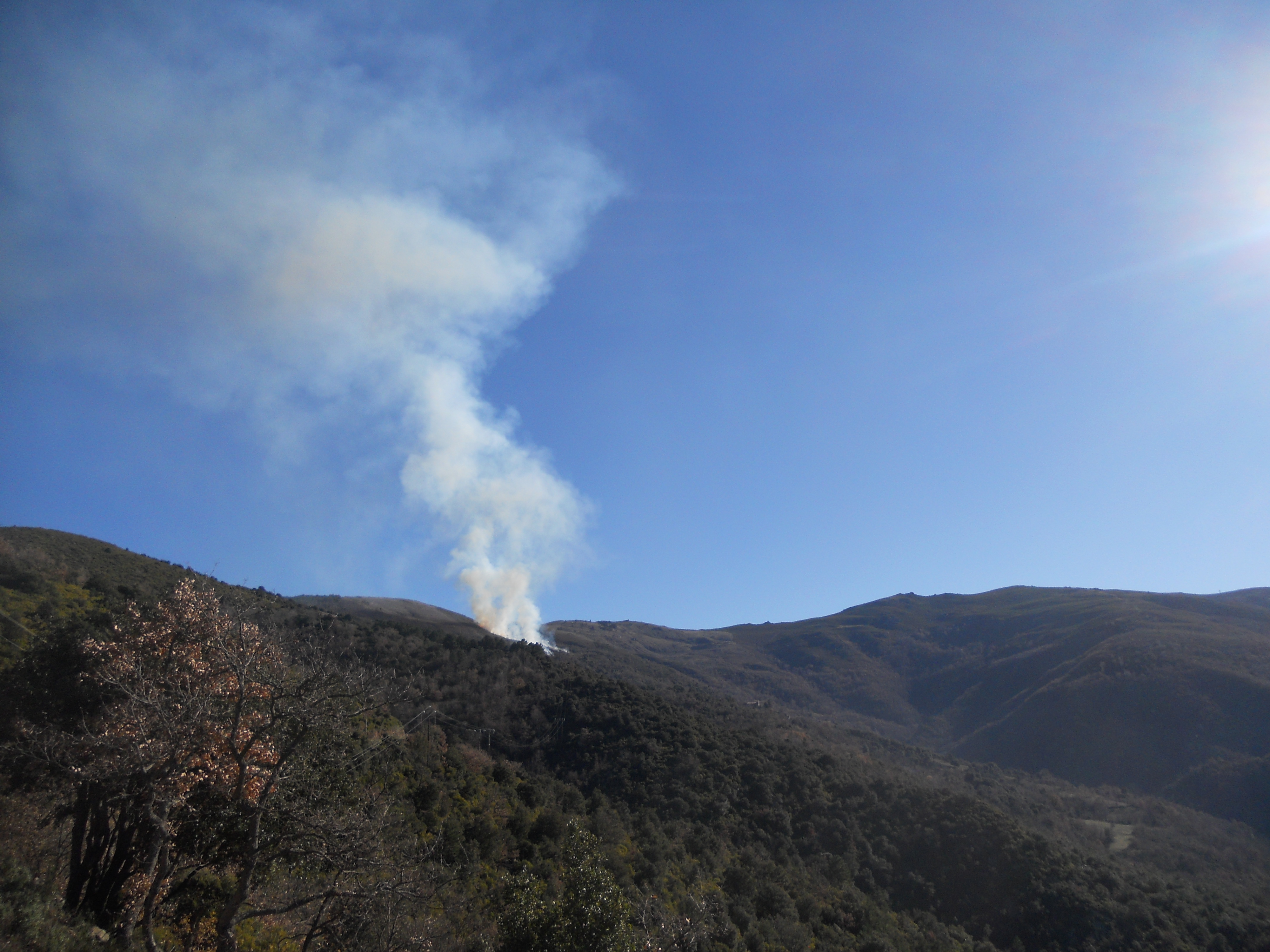 Voor alle duidelijkheid: dit is niet de brand die ik heb aangestoken. Het is gecontroleerd afbranden van de overwoekerde graaslanden op de helling.