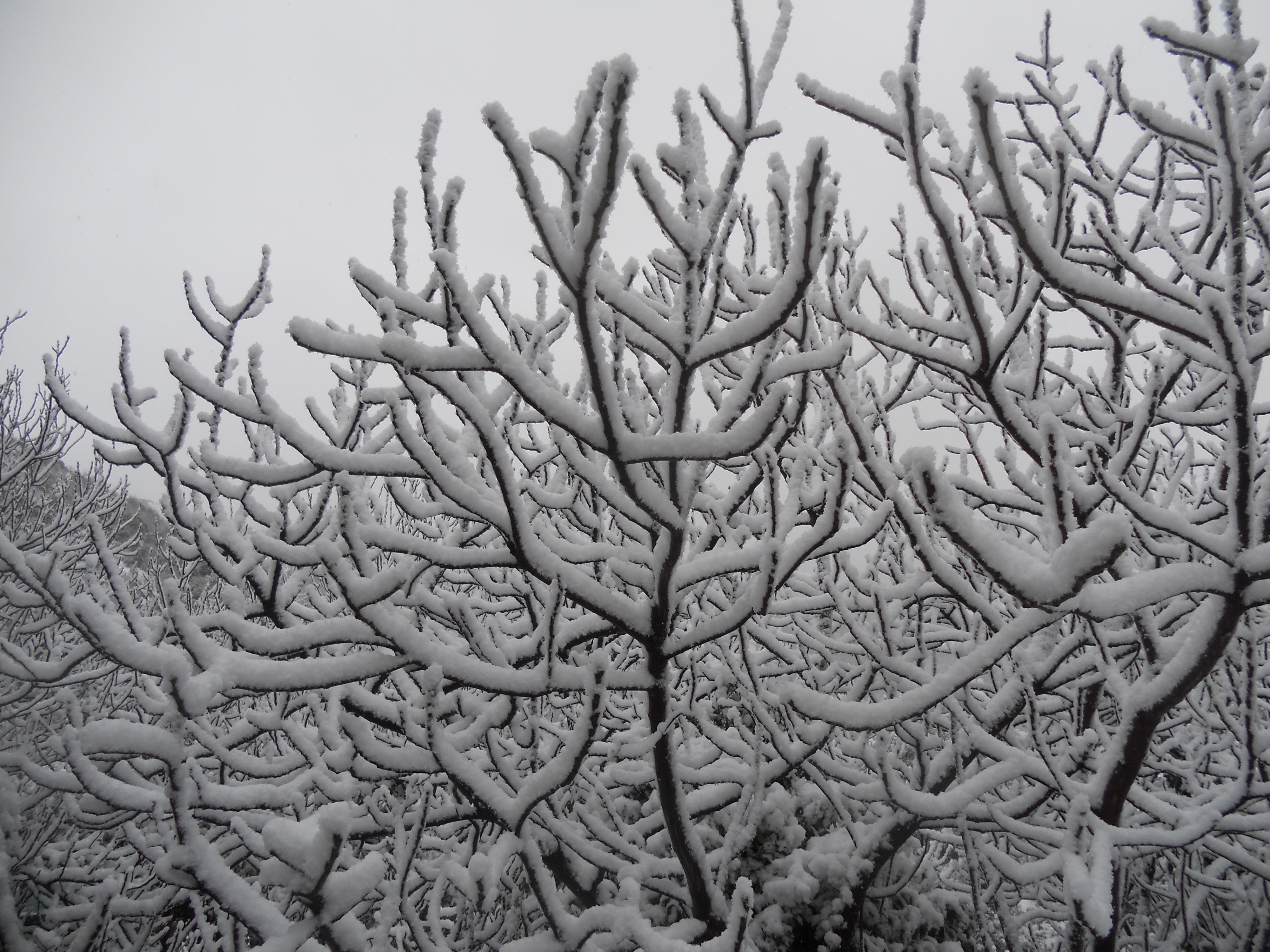 Het sneeuwen is begonnen. Het heeft al een paar keer gesneeuwd, maar vandaag hangt er een fijn gordijn van continu vallende, kleine maar stevige sneeuwvlokjes. Het is het soort sneeuw dat van plan is om een tijdje door te gaan en daarna te blijven liggen. Het is mooi om te zien. Ik heb alles in huis en vandaag is een auto zelfs nutteloos. Het sneeuwt namelijk ook in het dal. En als er beneden sneeuw geruimd moet worden, komen de bergdorpjes pas later aan bod. Het kan zelfs een paar dagen duren eer de weg vrij gemaakt wordt.