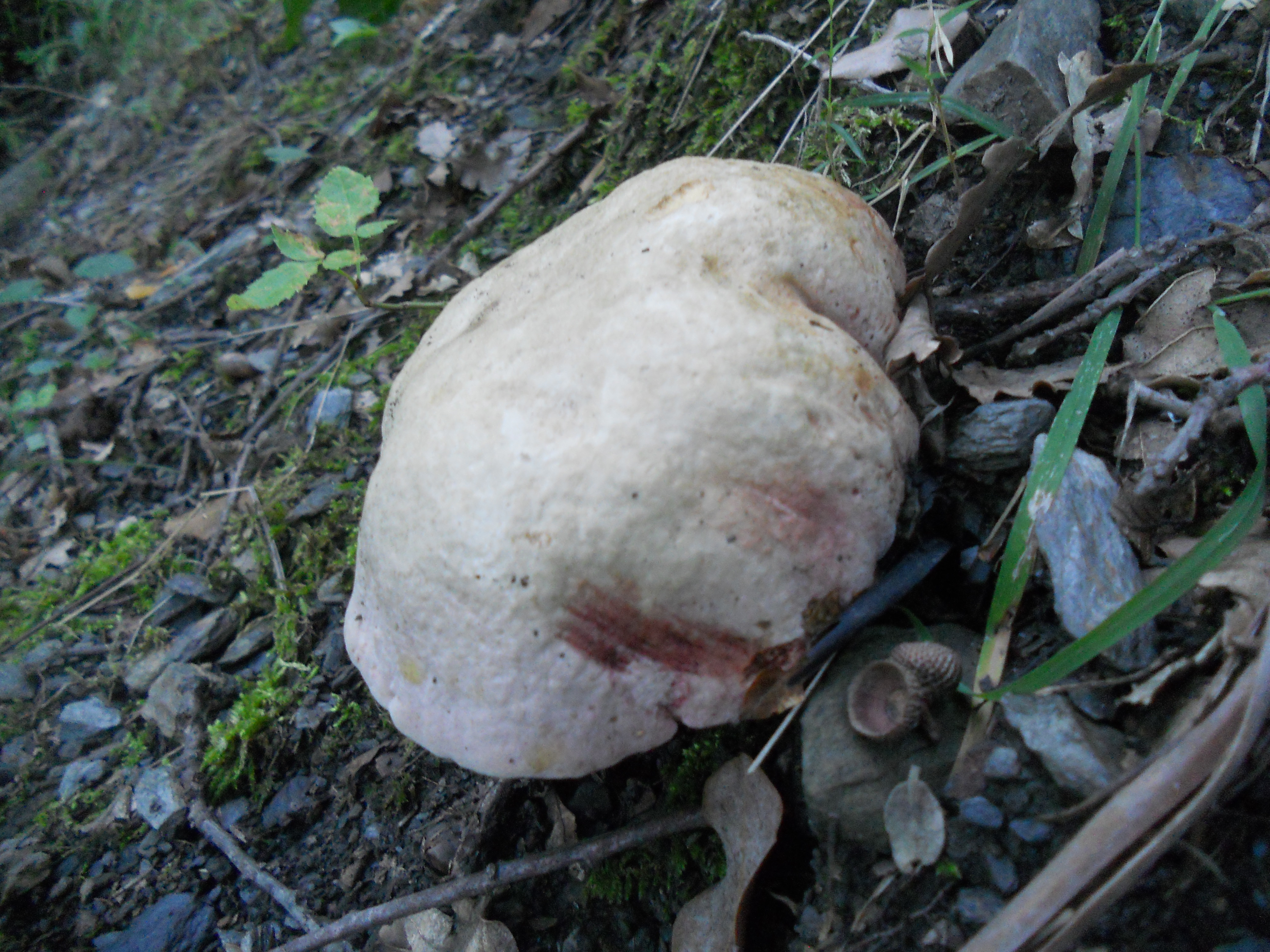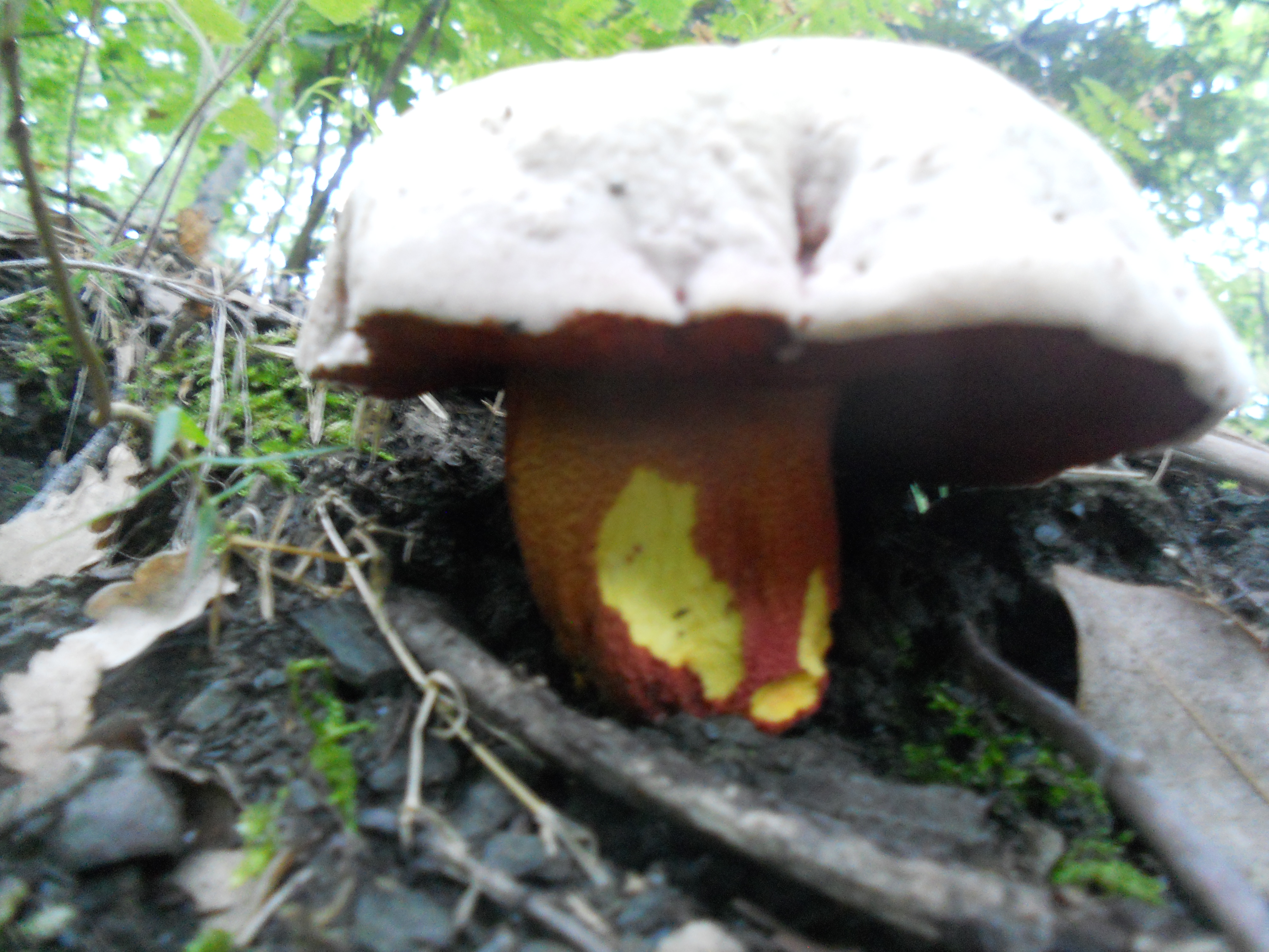 Voor wie zich wel eens zorgen maakt over mijn paddenstoelenkoorts: deze giftige satansboleet herkende ik van ver aan zijn grauwe hoed. Hij is een van de weinige giftige boleten en als je hem een keer in het echt hebt gezien, vergeet je hem niet meer.