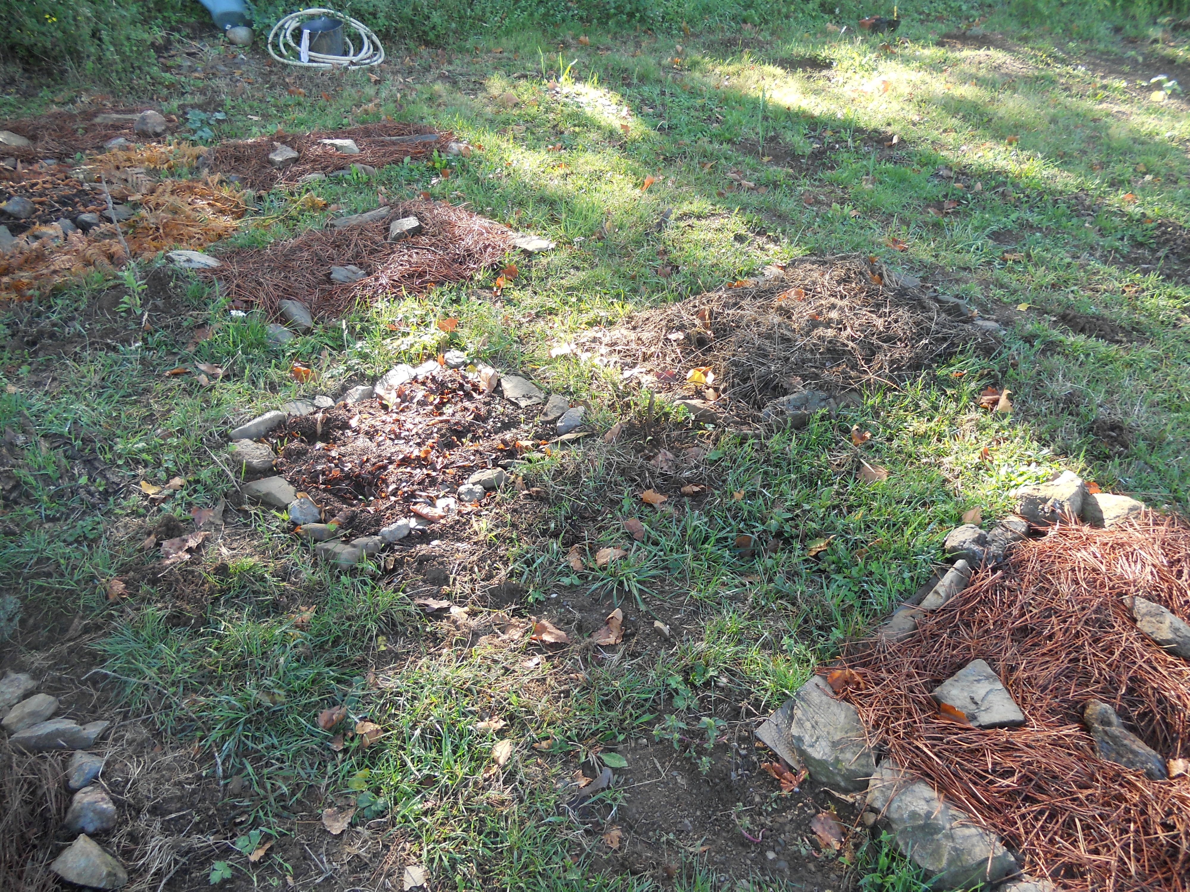 5. Voorjaarperkjes: perceeltjes die ik heb afgedekt met karton en mulch zodat het ondergronds gedierte de grond kan klaarmaken voor de lente.