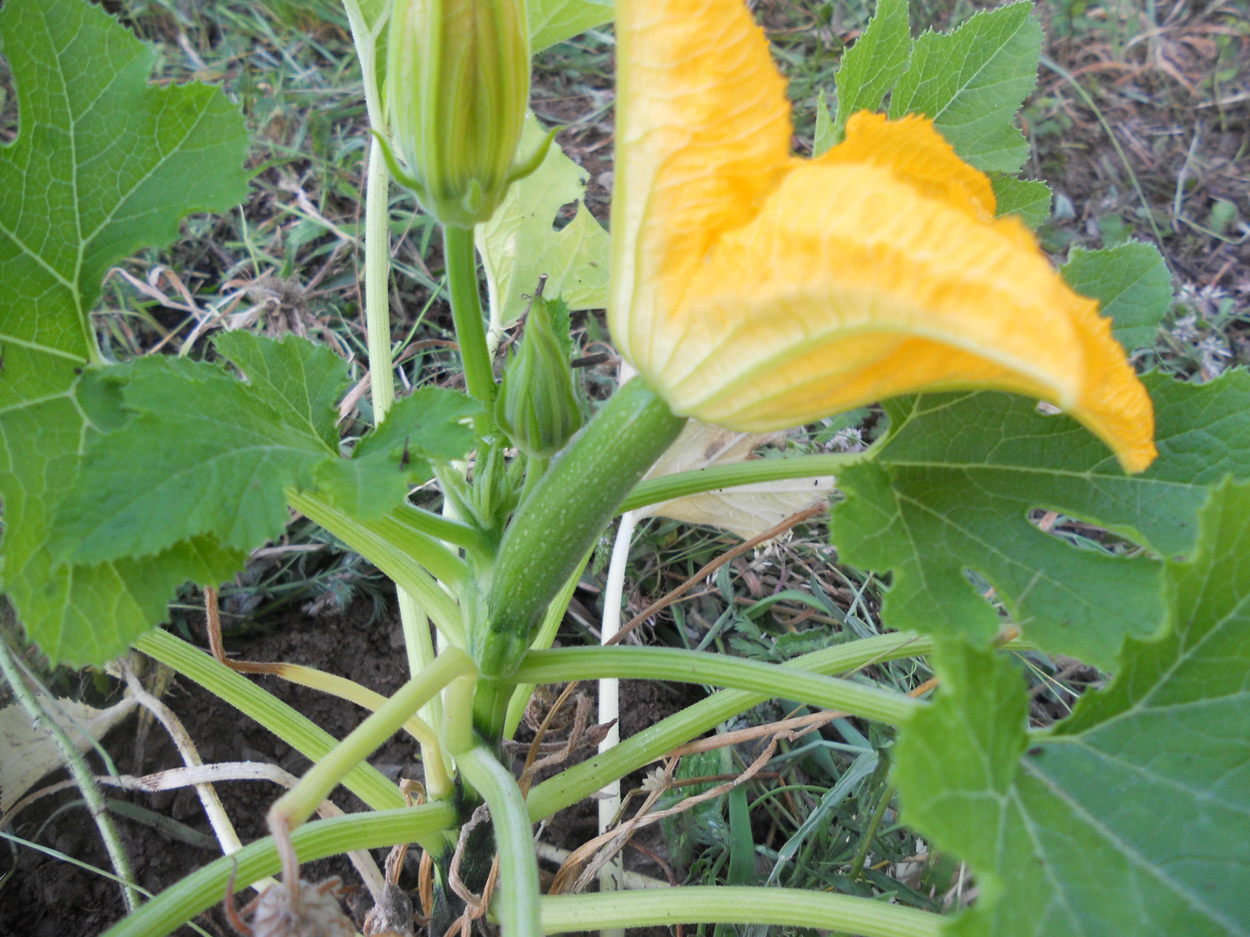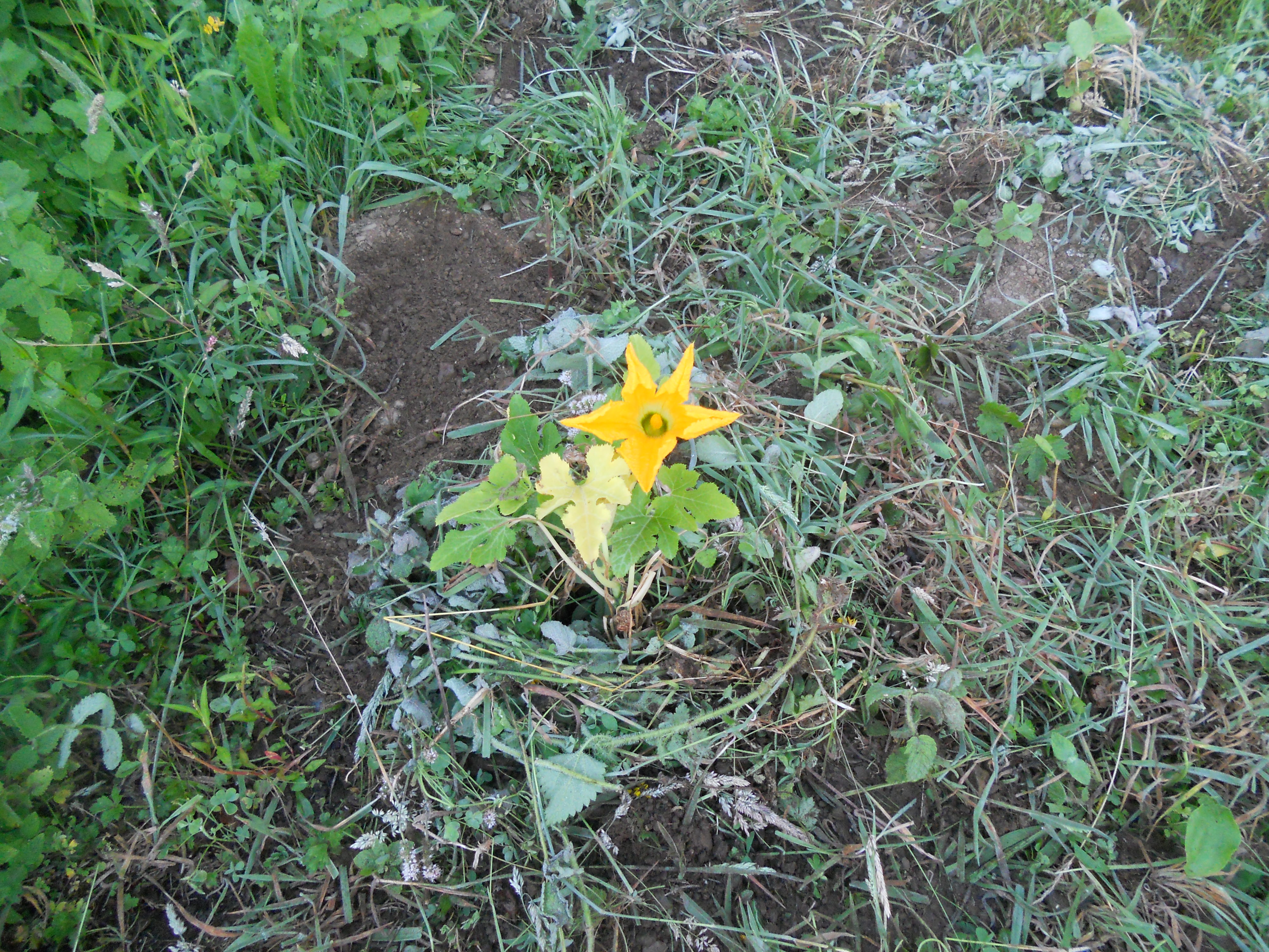 Ongeduldig als ik ben, heb ik me deze week op het terrein begeven, heb een willekeurige plek gekozen en daar een paar courgette- en pompoenplanten, die ik in potten gekweekt had, in de grond gestoken. Zonder omploegen, want ik doe aan permacultuur. Ik denk niet dat iemand al gemerkt heeft dat ik in het geniep de eerste steen van onze jardins familiaux gelegd heb. ’s Morgens vroeg en ’s avonds laat ga ik mijn planten gieten en ga ik wat wieden. Ik ben benieuwd wanneer men het gaat opmerken. Vanmorgen werd ik verwelkomd door een paar mooie gele bloemen en een eerste kleine courgette. Mijn planten zijn duidelijk in hun nopjes met de verhuis. Ik hoop dat ik deze herfst nog een paar grote knaloranje pompoenen kan laten zien.