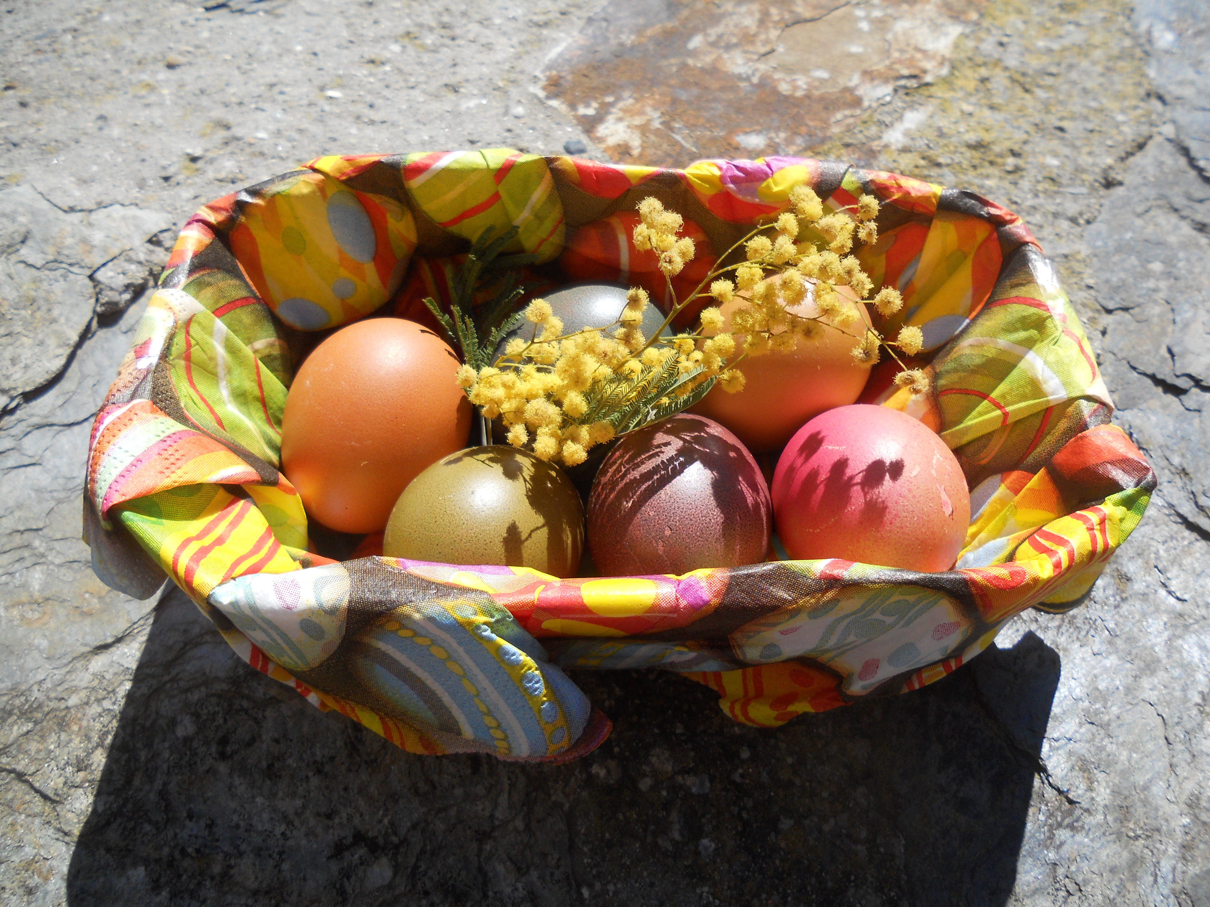 Haar helper, een vriendelijke man met getaand gezicht en een sterk Spaans accent, bracht me gisteren het mandje met gekleurde eieren. Ik liet haar groeten en bedanken.