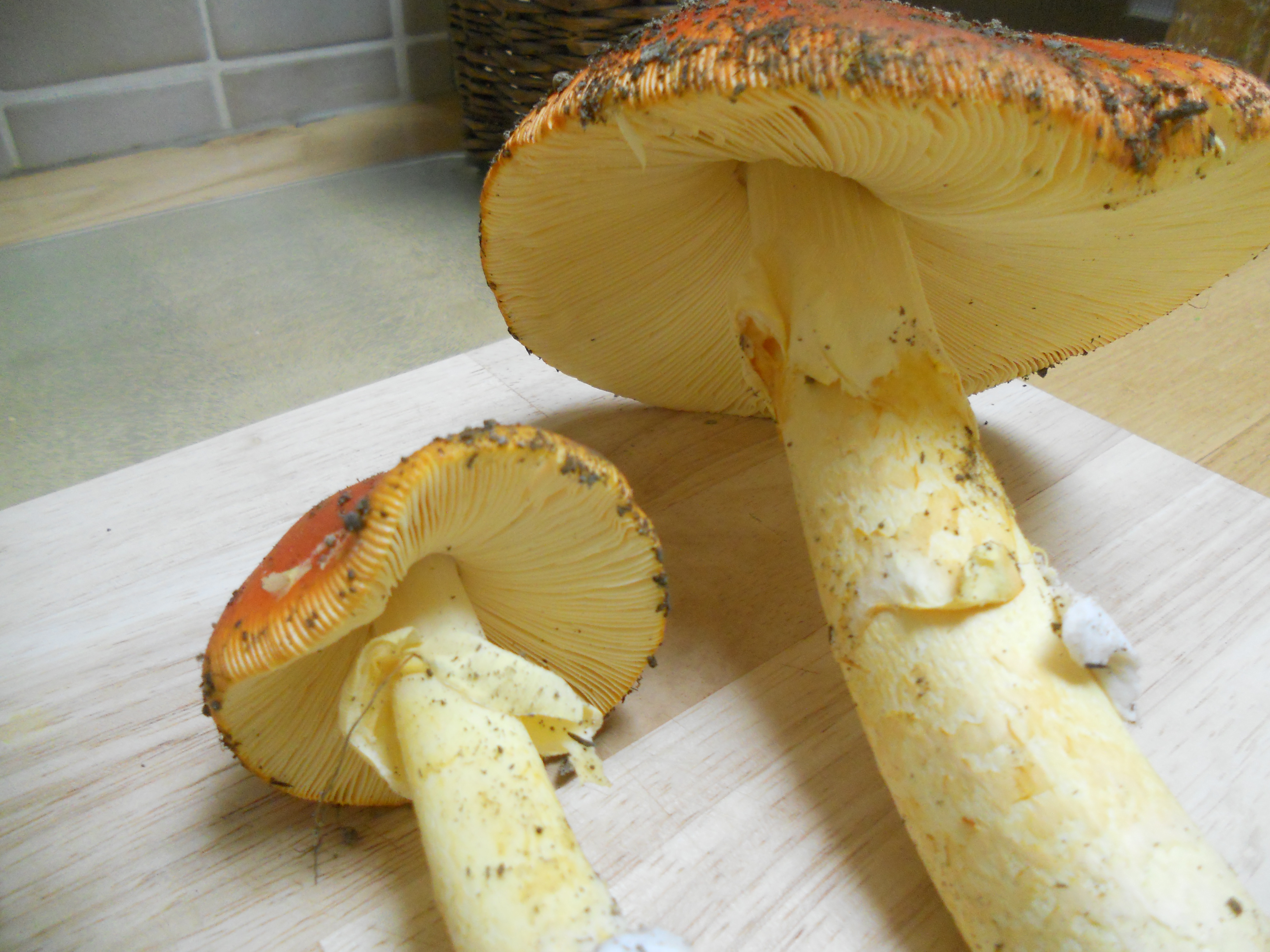 En dit jaar vind ik zomaar keizeramanieten. Oronges (met een o), heet dat hier. Ze hebben als ze jong zijn en als hun hoed nog op de bodem ligt wel iets van oranges, appelsienen.